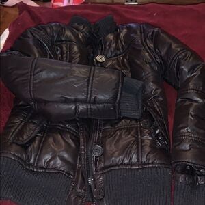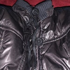 Justice puffer jacket, black waist length. No flaws or marks. There is a hood missing however doesn’t effect the overall appearance. From a smoke free home.