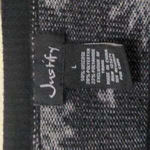 This preloved Justify Astrology Black & White Cropped Cardigan is decorated with suns moons and stars, with a deep v neckline and four button closure.