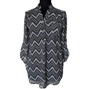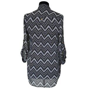 Justify Brand 3/4 Sleeve Sheer Blouse Chevron Pattern Polyester Junior's Size S
