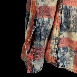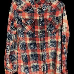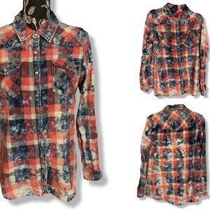 Justify Collar Denium Western Double Pocket Button Snap Pearl Plaid Women L Red