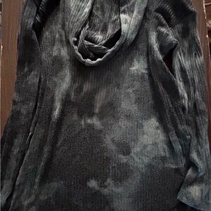Justify Gray Tie-Dye Ribbed Knit Sweater with Hood & Side Slits – Women’s Medium