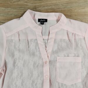 💜Justify Pink Semi-Sheer & Lace Adjustable Sleeve Top Medium