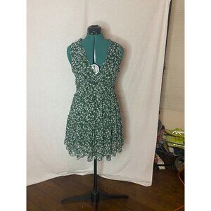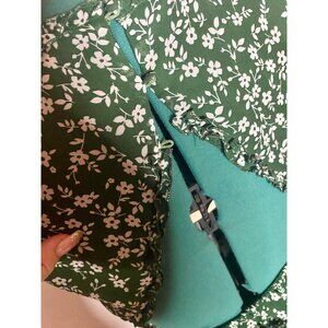 Justify green and white floral ruffle boho dress. Size medium. Never worn but it is missing a button. Please see photos. Smoke free one doggy home