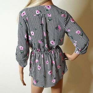 Justify Striped Floral Rose Pattern Long-Sleeve Tunic