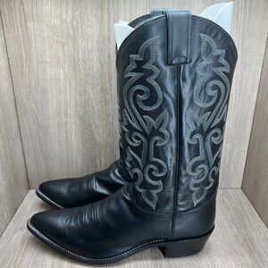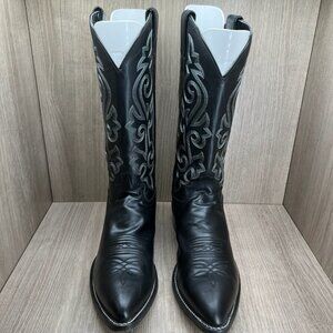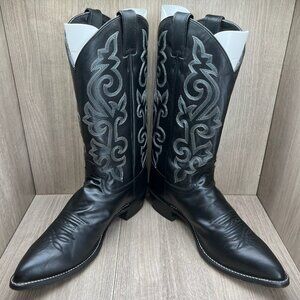 Justin 1408 Classic Western Boots Mens 11.5D White Embroidery Leather Black