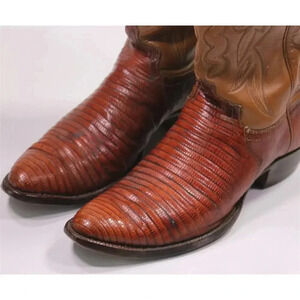 Justin 9088 Tall Brown Lizard Reptile Leather Stitched Pull-On Boots Men's 8.5 D