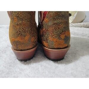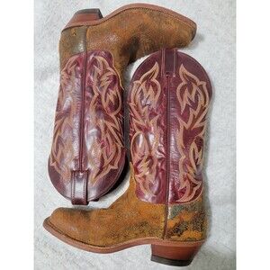 Excellent condition Justin Ladies' Bent Rail -Burnt Copper Picasso Cowhide 13" pull-on J125 square toe Burnt Copper Picasso cowhide foot with red Torino cowhide shaft Cushioned horseshoe midsole J-Flex Flexible Comfort System Leather outsole Double-stitched welt Handcrafted in the USA Item #: BRL420