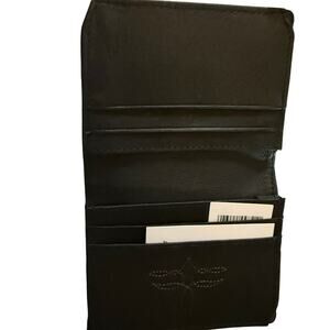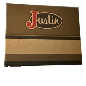 Justin Bifold Front Pocket Wallet, Brown Suede Leather, Tan Yoke & Studs, NWT. Genuine suede leather slim bifold card wallet with tan yoke and studs, 4 card slots, 2 slip pockets, 1 cash slot, embossed Justin logo on back. New with tags, retails for $54.