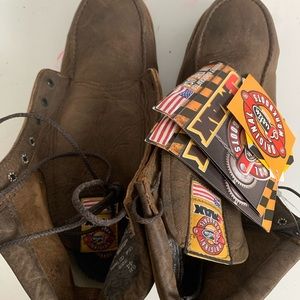 These shoes are in great condition and the shoelaces are attached and haven’t been laced on the shoe. The original tag is still attached to the boot with all its information!