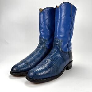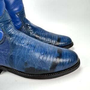Justin Boots Blue Exotic Lizard Roper Western Cowboy Boots Women's Size 6.5B