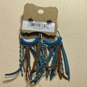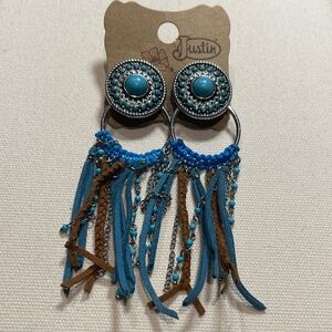 Justin Boots Concho Earrings with Fringe, Turquoise - NWT