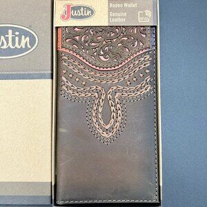 Justin Boots Genuine Leather Tooled Western Stitch Rodeo Wallet