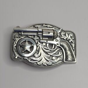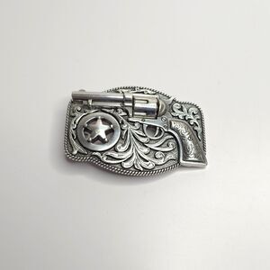 Justin Boots Lil Trigger Belt Buckle Spinning Revolver Western Marshall Badge