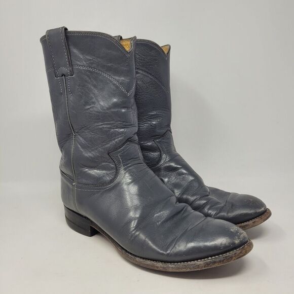Justin Boots Mens 9D Gray Leather Roper Western Cowboy 3025 VTG USA