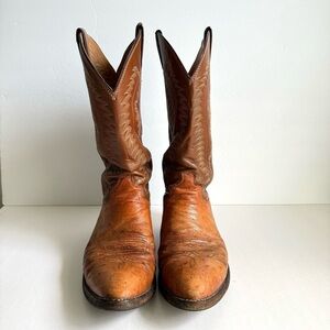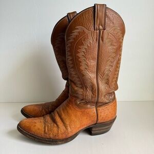 Justin Boots Ostrich Brown Exotic Leather Western Cowboy Vintage Style 8722 Mens 9.5 D