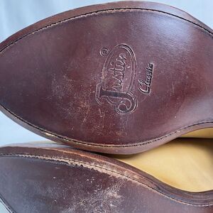 Stylish tan heeled boots. Intricate stitching design. Perfect for any occasion.