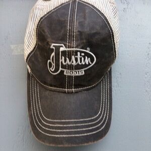 Justin Boots Leather Back Mesh Brown Cap In Great Prelove Condition This Hat Runes In The Small Side