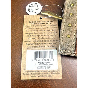 Justin Boots Western Rodeo Wallet RFID Brown Bifold Leather Studs Embossed NEW