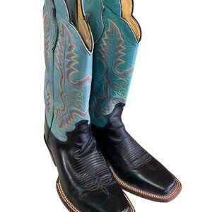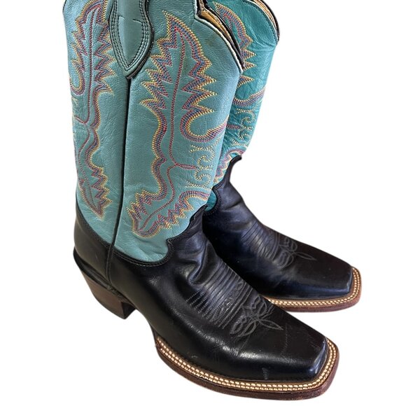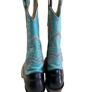 Justin Boots Women's Size 7 C Leather Western Cowboy Boots Teal And Black L2657