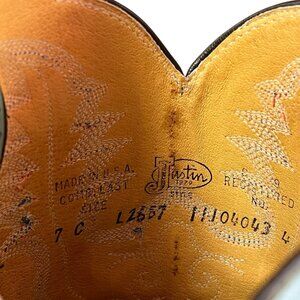 The Justin Boots Women's Size 7 C Leather Western Cowboy Boots in Teal and Black are a stylish and versatile choice for any wardrobe. With a classic round toe shape, pull-on closure, and low heel height, these boots offer comfort and easy wear for everyday use. The embroidered accents and geometric pattern add a touch of Western flair, perfect for casual outings, workwear, or even a party. Made with high-quality leather and featuring a mid-calf shaft style, these Justin Boots are a timeless piece that will never go out of style.