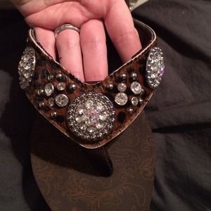 Worn one time! "Ally" Brand Justin Flip Flops. Cute leopard print in the cow hide. Come in original box