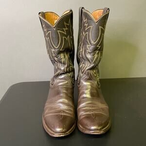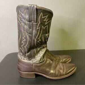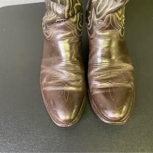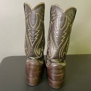 Justin Brown Leather Cowboy Boots Size 9 Vintage Round Toe Western Stovepipe