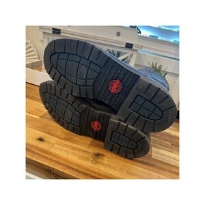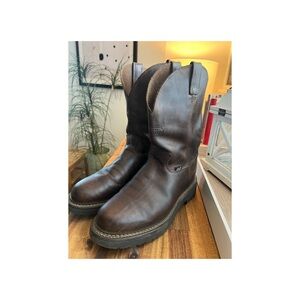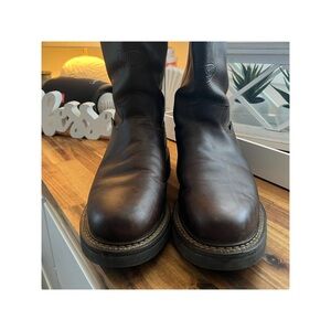 Stylish brown leather boots by Justin. Perfect for any occasion. Only worn a few times as you can see from tread. Excellent condition.