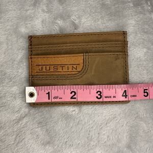 Justin Card Wallet Genuine Suede Leather Tan Brown Logo Justin Boots Cowboy