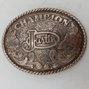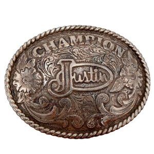 Justin Champion Belt Buckle Vintage Rodeo Cowboy Small Western Wear