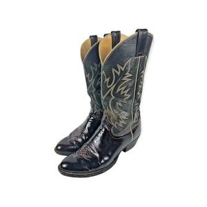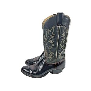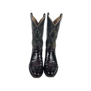 Justin Cowboy Boots 9.5 9 1/2 D Dark Navy Blue & Dk Burgundy Leather Embroidered