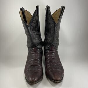 Justin Cowboy Boots Mens Size 9D Two Tone Burgundy Black Leather Almond Toe 1509