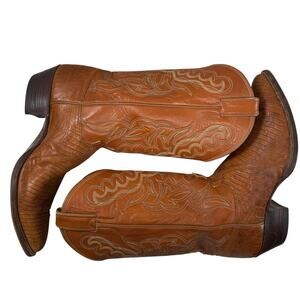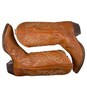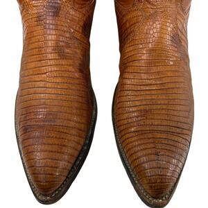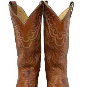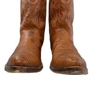 Justin Cowboy Western Boots Vintage Lizard Men’s 10.5 D Orange Camel Tan Leather