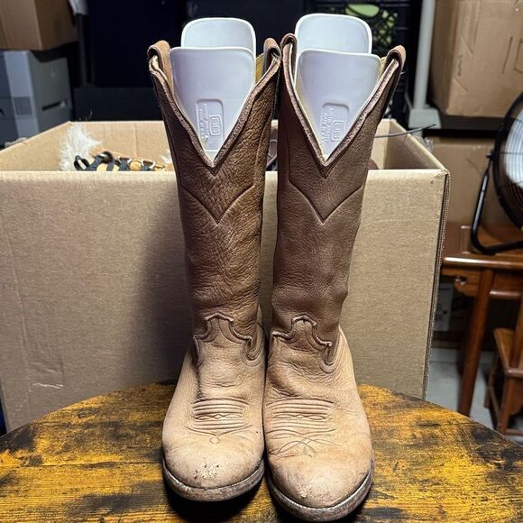 Justin Euro Elk Leather Cowboy Boots Mens Tan Made In USA Boot 1325 Size 8