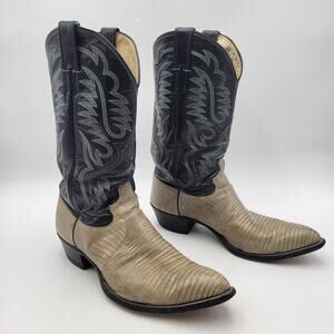 Justin Gray Silver Genuine Real LIZARD Skin Cowboy Western Boots Sz 10.5 EE