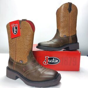 Justin Gypsy Boots Sz 6.5 Welt Saddle Stitch Floral Embossed J-Flex Cowboy Boots