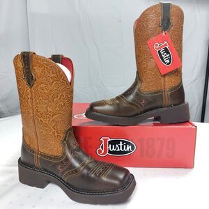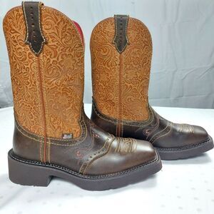 Justin Gypsy Boots Sz 7.5 Welt Saddle Stitch Floral Embossed J-Flex Cowboy Boots