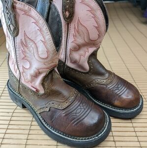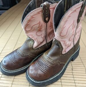 Justin Gypsy L9901 Women's Pink Leather Western Chunky heel Cowgirl Boots Size 6B. 220,pm