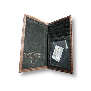 Accents: Boot stitch embroidery, RFID protection, multiple card slots, clear ID window, Justin logo embossing