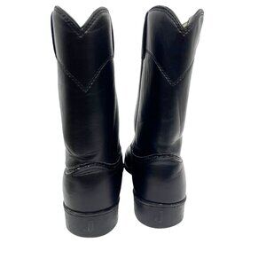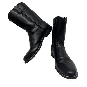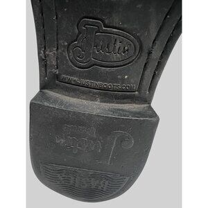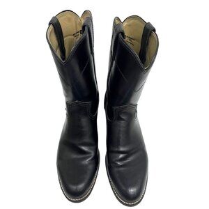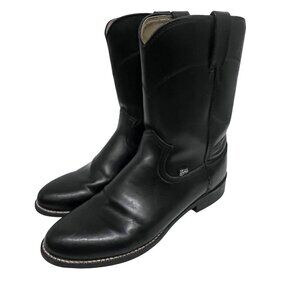 Justin Basics Mens Black Leather Western Cowboy Roper Boots JB3000 Pull On Comfort Cushioned Rubber Soles Unisex. Great Pre-Owned Condition Gently Worn. Ships from smoke free home.