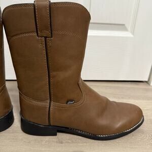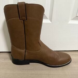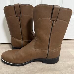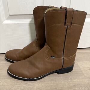 Justin Men's Brown Basics Western Cowboy Roper Work Boots Size 12 D. Pre-owned in good condition.