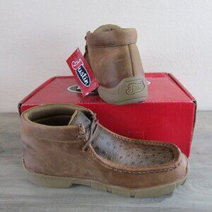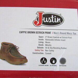 Justin Mens Cappie Ostrich Print 4" Driving Moc Boot - Brown - SE239