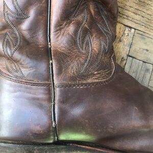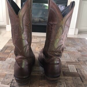 Justin Mens Classic Western Cowboy Boots Brown Leather. Style 2261. These are classic Justin boots in a gorgeous deep brown color. There is some wear(please see all photos) but lots of life left in these classic western boots. Size 10D