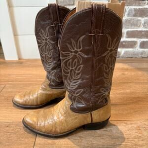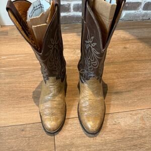 Justin Mens Cowboy Boots Size 9 Tan & Brown leather