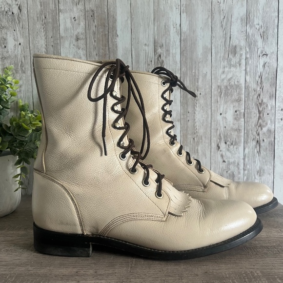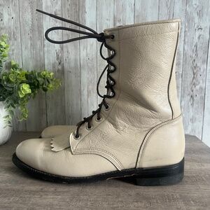 Justin Men’s Lace Up Combat Off White Boots 8