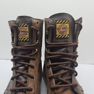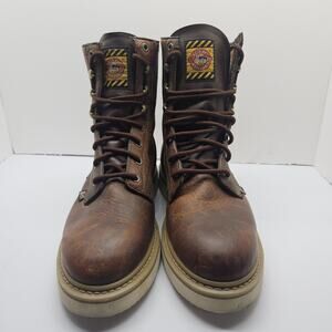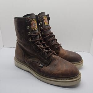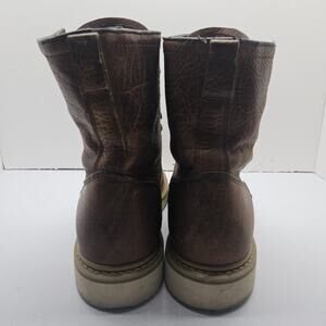 Justin Mens Original 9” Brown Leather Work Boots Axe Wedge Heel Size 11 M WK908