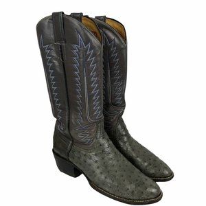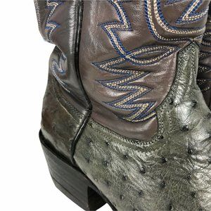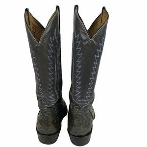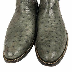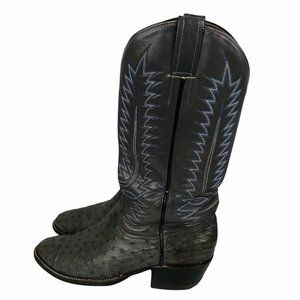 Justin Mens Ostrich Cowboy Boot Sz 7W Wide Gray Leather Blue Stitching Round Toe
