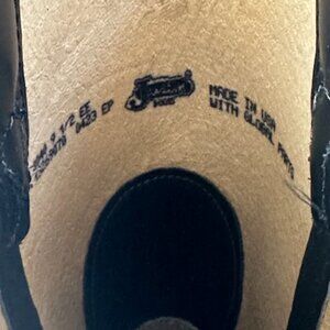 These boots are a classic, understated black cowboy boot known for comfort and durability.