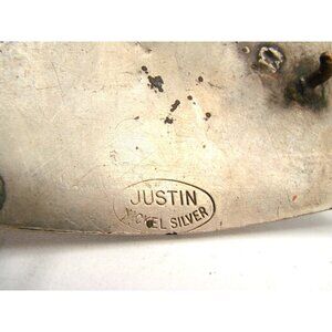 JustinBeltBuckle, NickelSilverBuckle, GoldSaddleBuckle, WesternRanchStyle, RopingGear, BullridingBuckle, VintageBeltBuckle, WesternAccessories, CowboyStyle, RanchWear, CollectibleBuckles, HandmadeBelt, RusticFashion