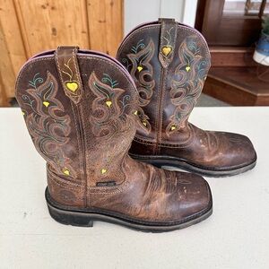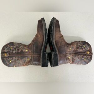 Classic light brown leather with a beautiful multicolored embroidery. Used, but still have a lot of life left in them!