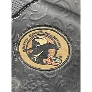 The Justin Pink Gypsy Cowboy Western Boots are a stylish and comfortable choice for women in size 7.5B. Made of brown leather with embroidered accents, these ankle boots feature a round toe, low block heel, and a pull-on closure. The boots have a Western theme, making them perfect for a party or cocktail occasion. With a rubber outsole and foam insole, these boots provide both style and comfort for year-round wear. Perfect for adding a touch of cowboy flair to any outfit.
